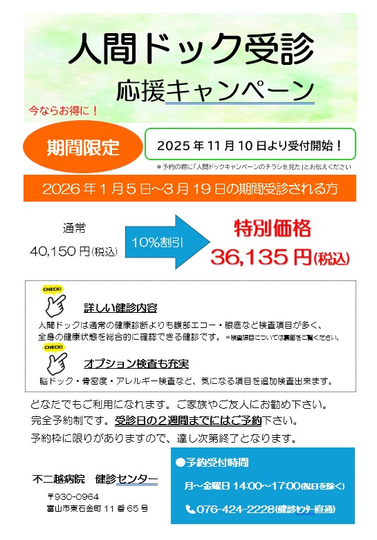 人間ドック受診 応援キャンペーン【期間限定】